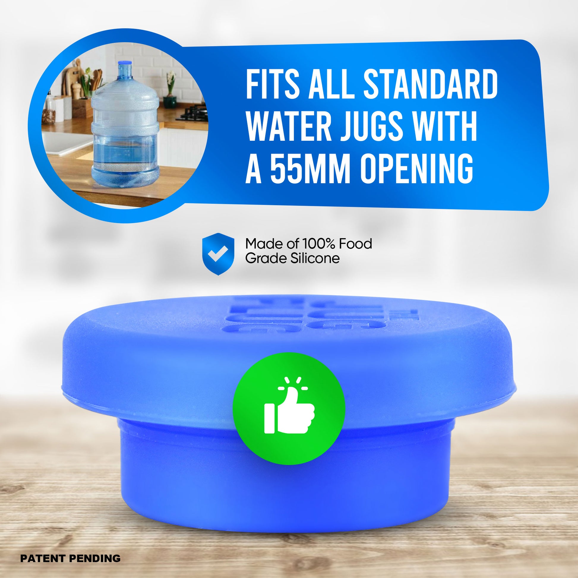 Fits 90–95% of 3- and 5-gallon water jugs with 55mm openings. Works with most non-threaded and many screw-top jugs too.